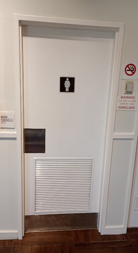 Ladies’ toilets are located on the left side of the entry doors.
